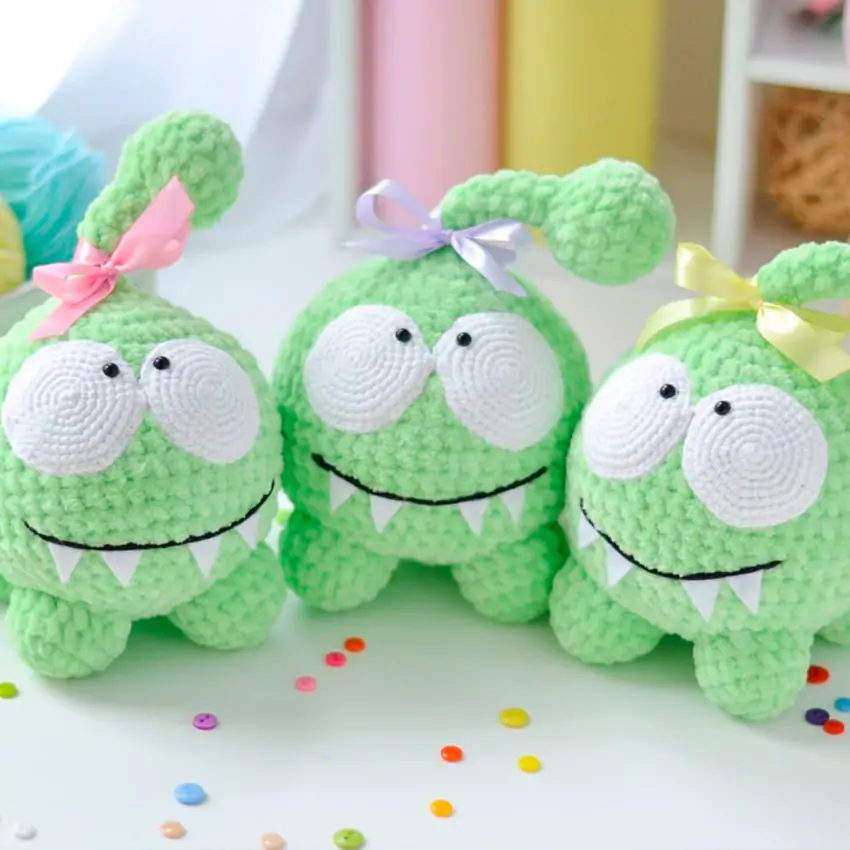 Бесплатный мастер-класс по вязанию амигуруми "Ам-ням". Это очень простое описание, с помощью которого вы легко свяжете своим детям забавную игрушку. Автор делится, что из одного мотка пряжи получилось целых две игрушки. На фото обе связаны из плюшевой пряжи Himalaya Dolphin Baby цвета 80350, но с использованием крючков №3 и №4. Из-за этого размеры игрушек отличаются: при вязании крючком №3 высота малыша без хвостика составляет 12 см, а крючком №4 — 14 см. Автор желает вам приятного вязания и с радостью ждёт ваших работ.