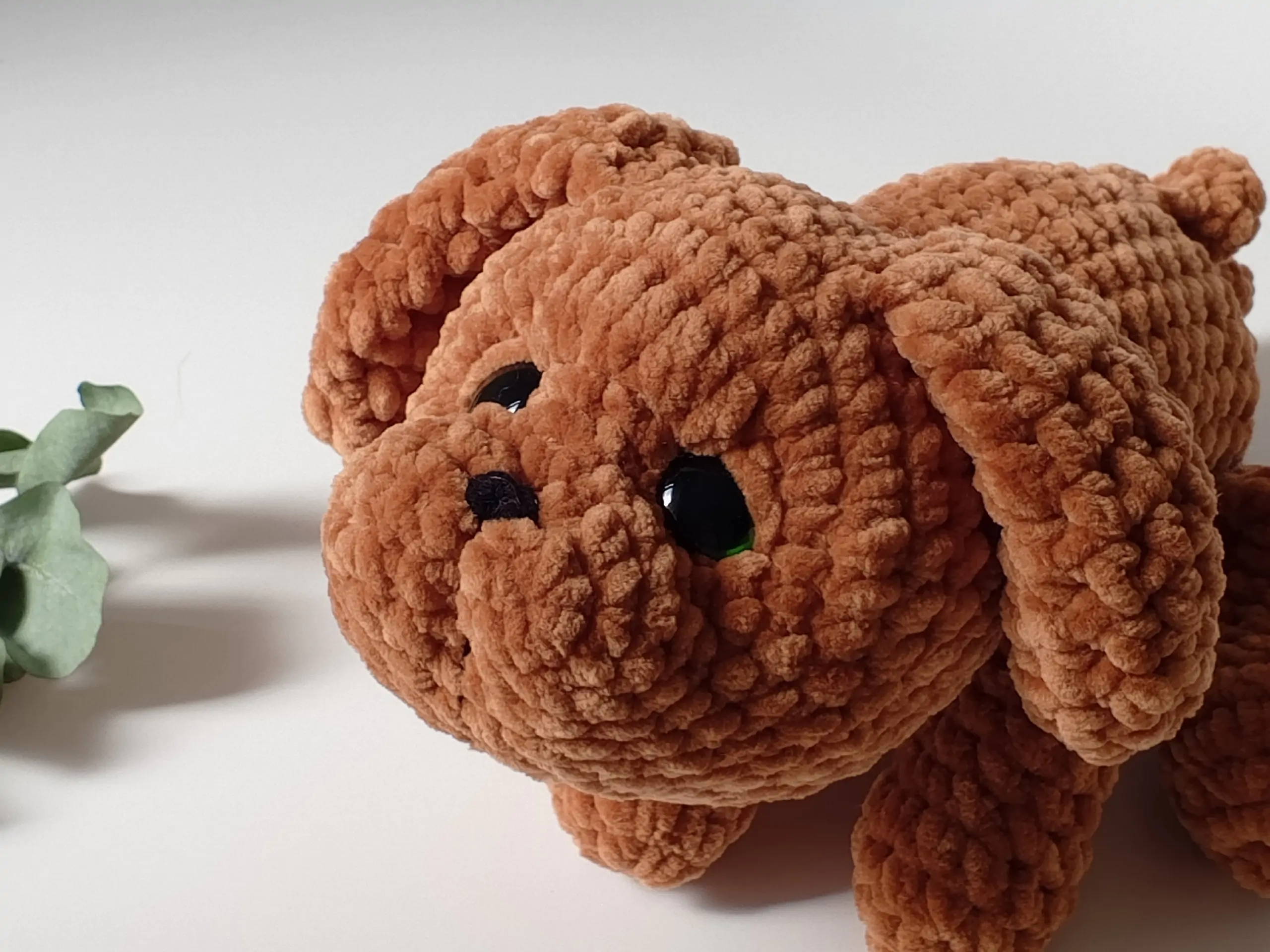 Бесплатный мастер-класс от Дарьи Титовой по вязанию плюшевой собачки-амигуруми Коки крючком. Размер готовой игрушки зависит от выбранной пряжи и плотности вязки. Для работы потребуется мягкая плюшевая пряжа Wolans Bunny Baby (плотность 120м/100г), крючок 4,5 мм и безопасные глазки диаметром 20 мм. Особенность техники — голова и тело вяжутся как единое целое, что обеспечивает аккуратность и прочность основы. Все остальные детали (ушки, лапки, хвостик, мордочка) пришиваются на завершающем этапе.