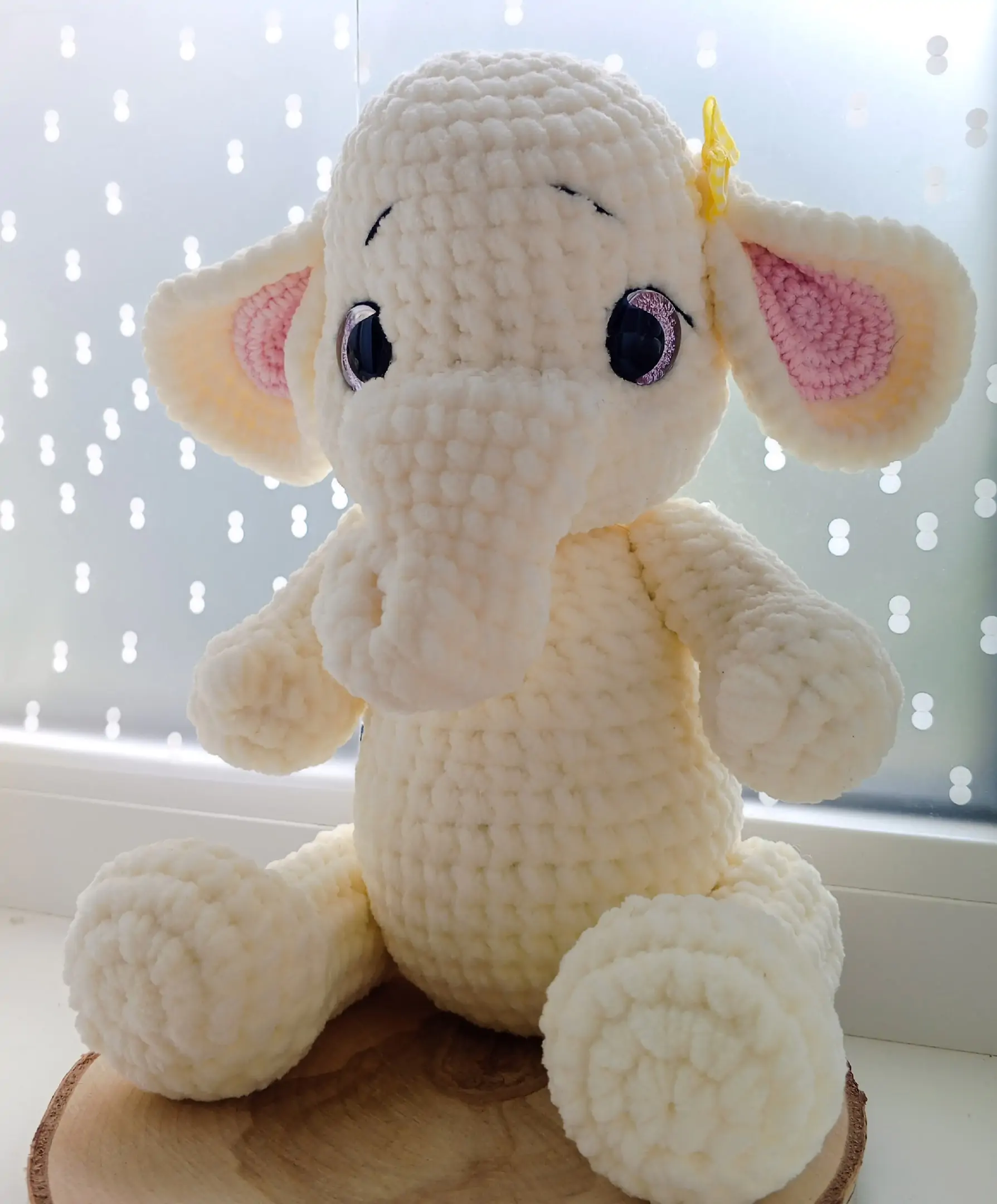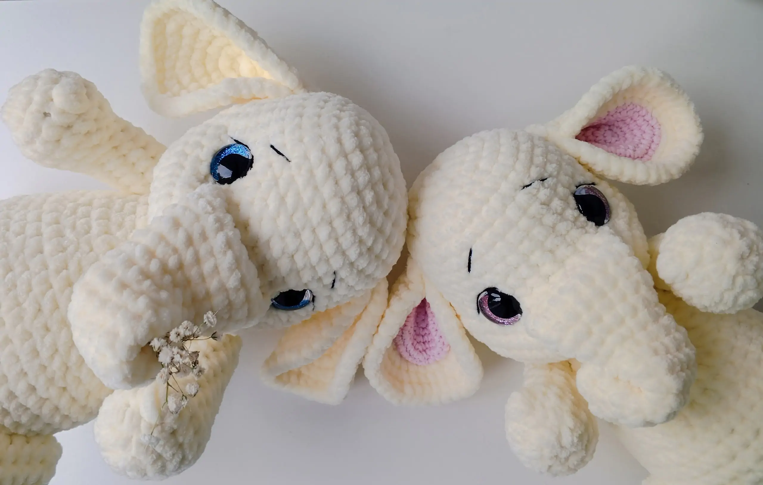 Мастер-класс по вязанию пары слоников от Дарии Титовой. Для создания игрушек использовались разные крючки: мальчик Рэнни связан крючком №4 мм свободной вязкой, девочка Пэнни - крючком №2,5 мм тоже свободной вязкой. На двух слоников ушло около 3 мотков основной пряжи, а также немного полухлопка для оформления ушек и утяжки мордашки. Наполнение игрушек сделано не слишком плотным. Особое внимание стоит уделить вставке крупных суставов для ножек - при работе с тонким крючком №2,5 мм этот процесс требует некоторых усилий. Разница в размерах крючков позволяет создать гармоничную пару игрушек - более крупного мальчика и изящную девочку. Мастер-класс подробно описывает процесс вязания всех деталей и их сборку, включая особенности оформления мордочек и крепления подвижных конечностей.