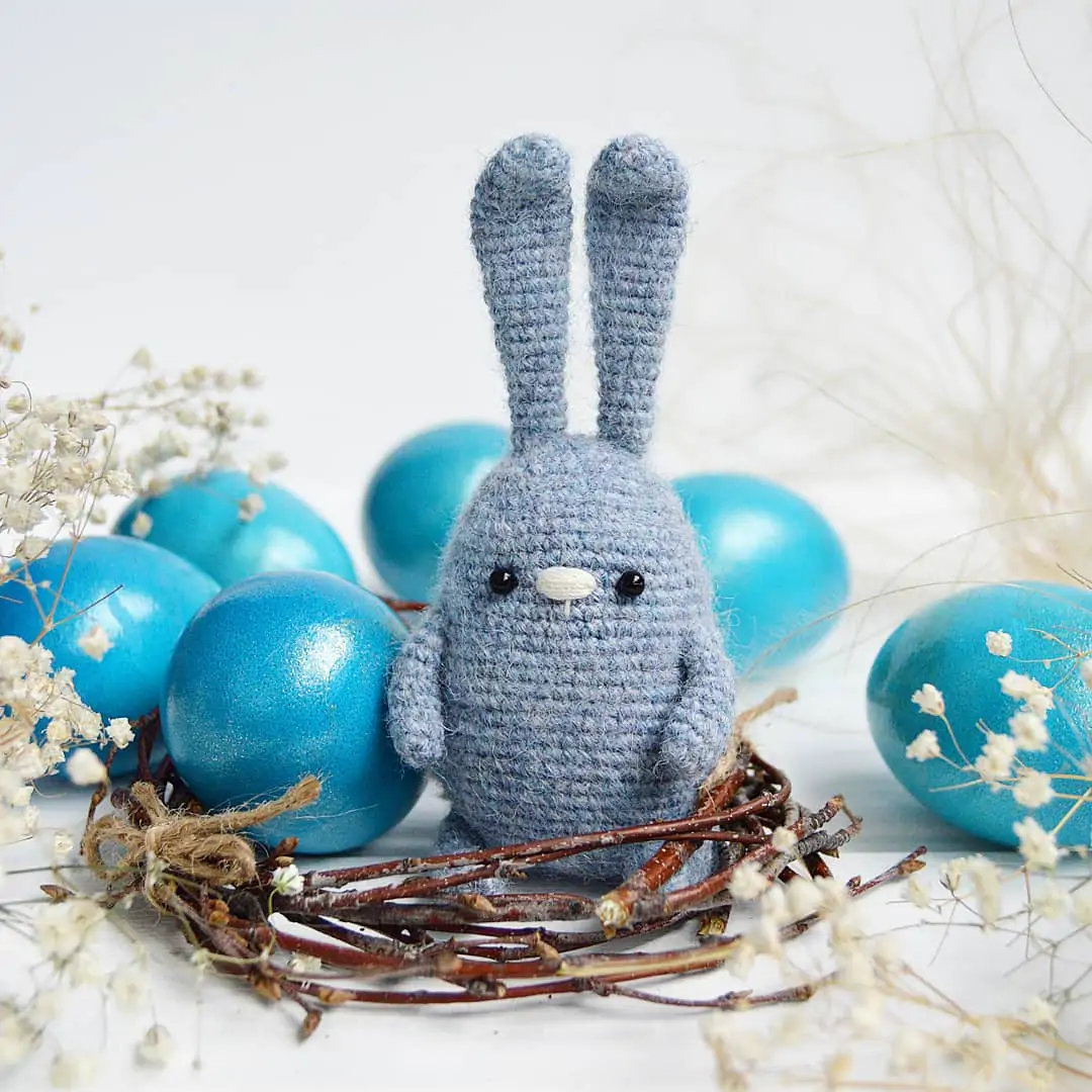 Бесплатный мастер-класс от Люси Розоновой по вязанию весеннего кролика-амигуруми крючком. Высота готовой игрушки в положении сидя с учётом ушек составляет примерно 12,5 см. Для работы потребуется пряжа Vita Soft Cotton и крючок 1,5 мм. Схема довольно простая и отлично подойдёт для начинающих мастериц. Такой пасхальный кролик станет милым декором к празднику.