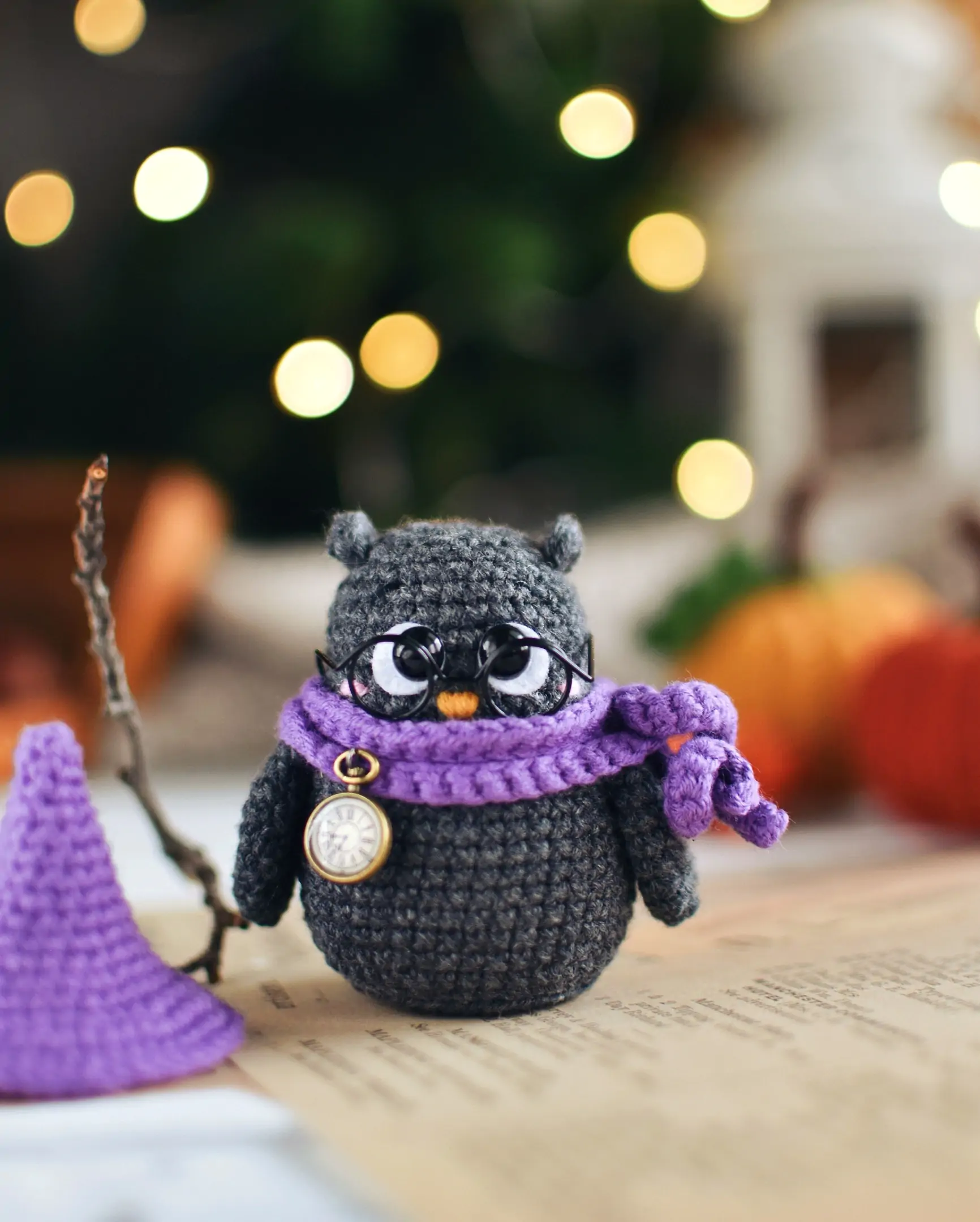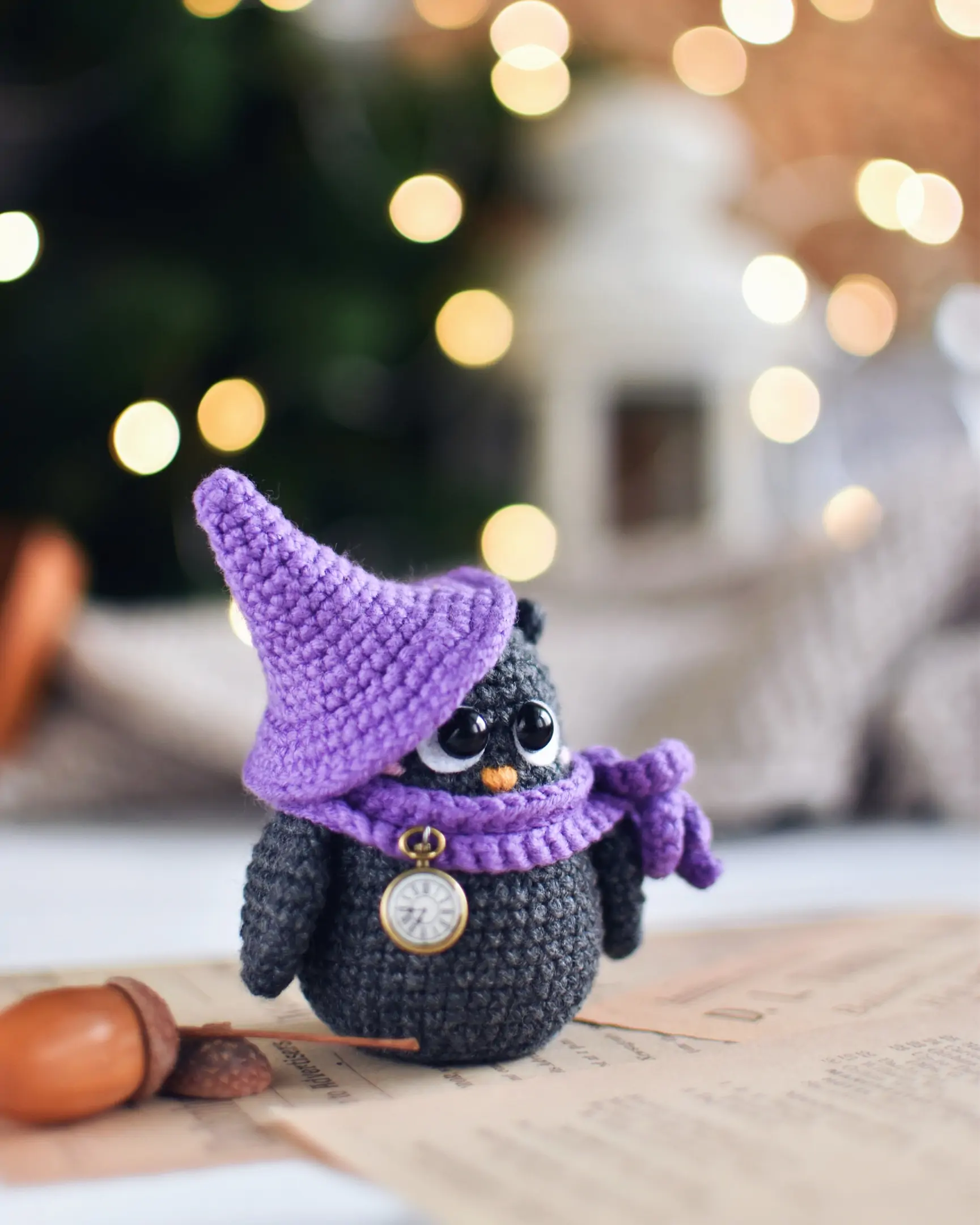 Бесплатный мастер-класс от Людмилы Орловой по вязанию миниатюрного совёнка крючком. Размер готовой игрушки - около 6 см без шляпки. Для работы потребуется: пряжа Alize Cotton Gold, крючок 2 мм, наполнитель, игла для сшивания. Особенности вязания: голова и тело выполняются как единая деталь, крылья ввязываются в процессе работы, отдельно пришиваются только ушки. В мастер-классе также представлены схемы вязания декоративных элементов - шляпки и шарфика. Уровень сложности - начальный, подходит для тех, кто осваивает амигуруми. Готового совёнка можно использовать как брелок, ёлочное украшение или элемент декора. При публикации работ просьба указывать авторство. Буду рада увидеть ваши готовые совята в комментариях!