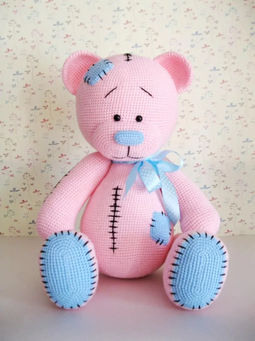Бесплатный PDF мастер-класс от Алёны Васильевой по вязанию крючком мишки в стиле Me To You. При использовании указанных материалов мишка будет около 42 см в полный рост и около 30 см в сидячем положении.